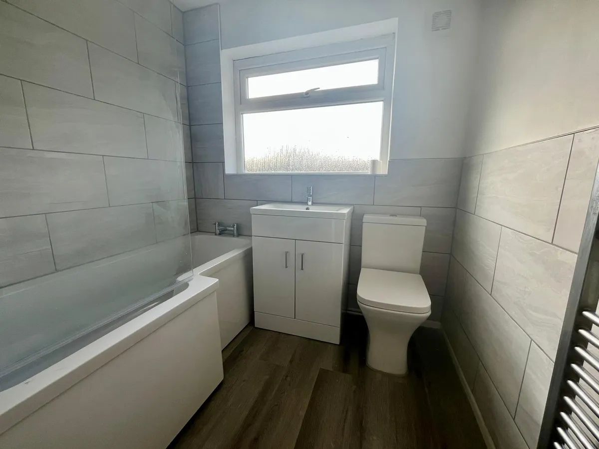 The layout provides comfortable living spaces across both floors, with a family bathroom upstairs and the added convenience of a ground floor toilet. The fresh refurbishment ensures tenants can enjoy contemporary living from day one.