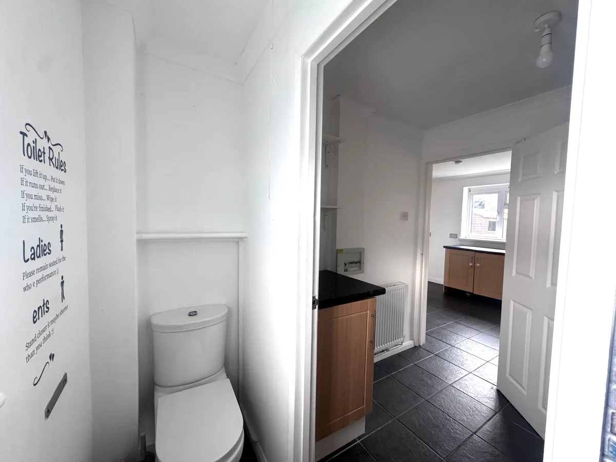 Upon entering, you are greeted by a spacious living area, ideal for both relaxing and entertaining. The large kitchen provides ample room for cooking and dining and flows seamlessly into a separate utility area, adding valuable extra storage and practicality. A convenient downstairs toilet further enhances the functionality of the ground floor.