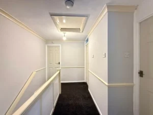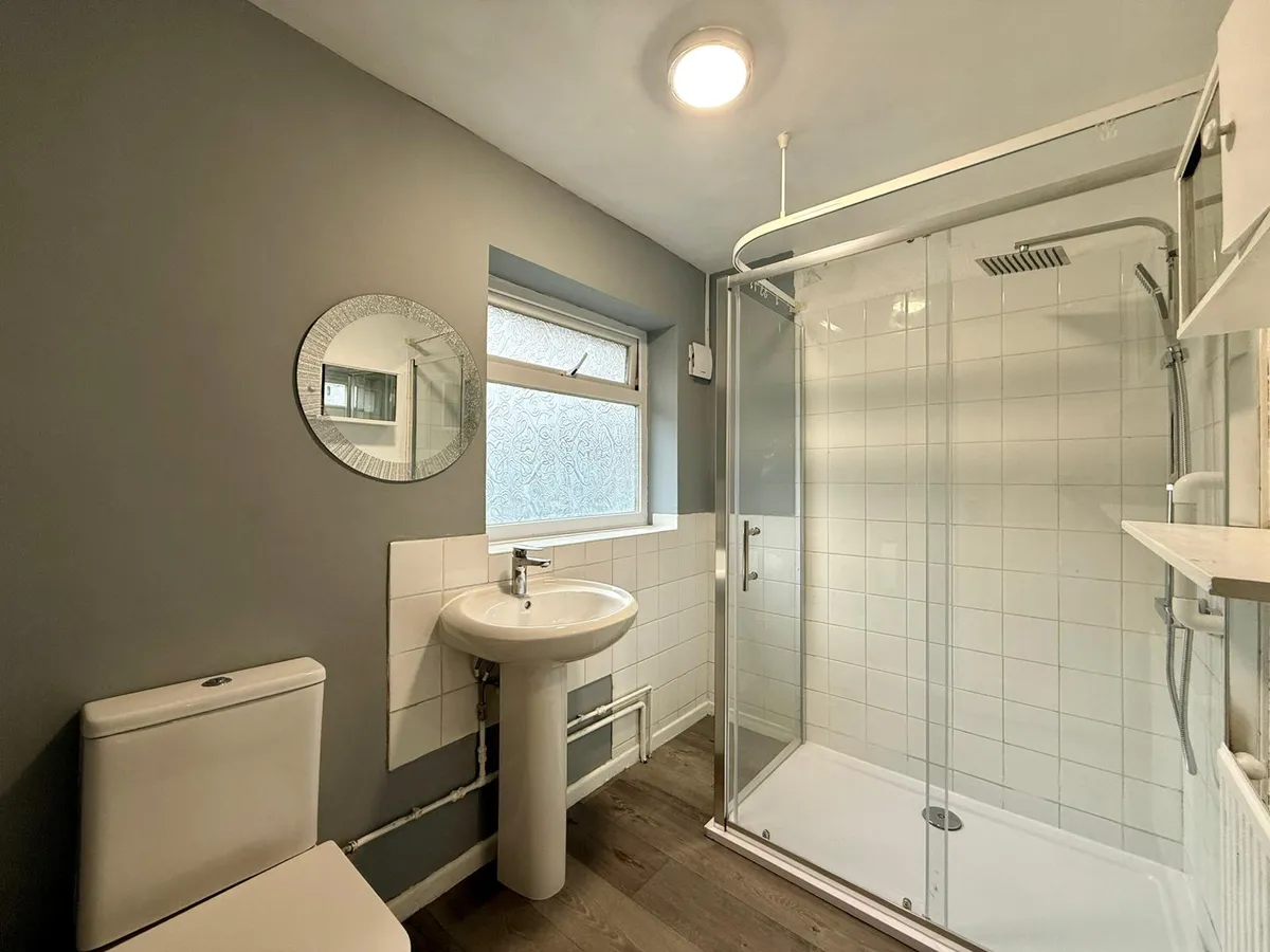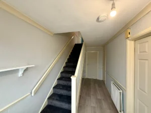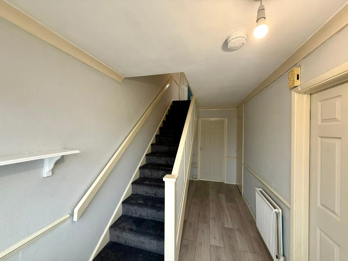 The ground floor comprises a welcoming living room with double glazing window front and back, and a kitchen space with brand new cabinets. Upstairs, the property offers three bedrooms with new carpets and built in wardrobes, along with a family walk in shower room, providing a practical layout for everyday living.
