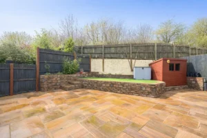 Externally, the property offers a patio area ideal for outdoor seating and entertaining, leading to a raised lawned garden. To the front, there is driveway parking providing convenient off-road parking.