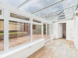 On the ground floor, the property comprises a welcoming living room with an open plan dining area, creating a bright and spacious living environment. The fitted kitchen offers ample storage and workspace, while the conservatory provides additional living space overlooking the garden. The property has also been extended to include a ground floor bedroom with a walk-in shower room, making it ideal for guests, multi-generational living, or those seeking ground floor accommodation. A cloakroom completes the downstairs layout.