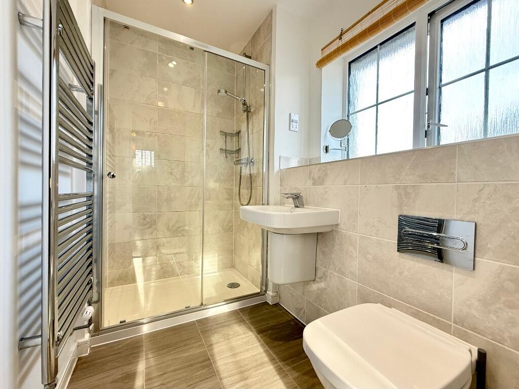 The first floor offers four generously proportioned bedrooms, each thoughtfully designed to provide comfort and tranquillity. The master bedroom benefits from a contemporary en-suite shower room, while the remaining bedrooms are served by a beautifully tiled contemporary family bathroom featuring a stylish three-piece suite and elegant tall, heated towel radiator.