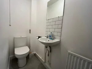 The ground floor features a welcoming living room, ideal for relaxing and entertaining, alongside a fitted kitchen with ample dining space for family meals. A convenient downstairs cloakroom adds further practicality.
