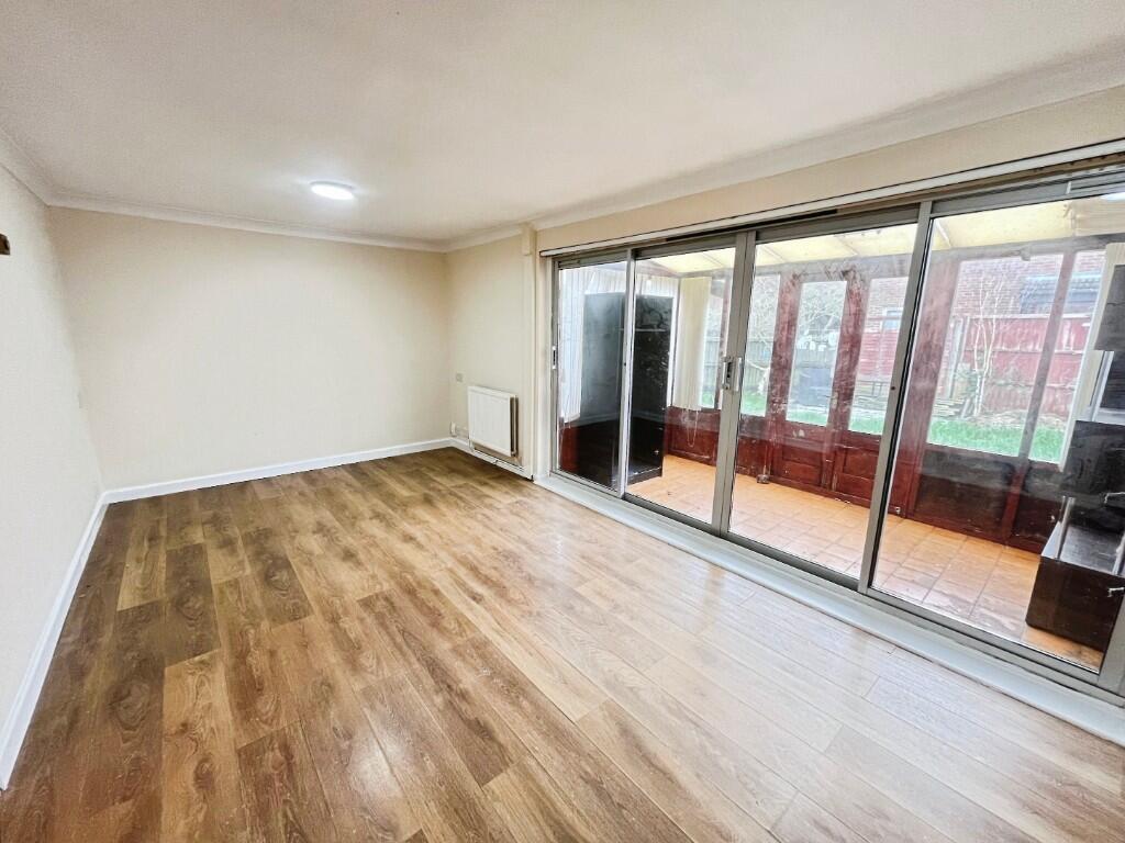 The property offers spacious accommodation, featuring a very large conservatory providing excellent additional living space, a large low-maintenance rear garden, and the rare benefit of a front garden. Upstairs comprises a bathroom and separate WC, a large master bedroom, two further double bedrooms, and an additional smaller room, making the layout ideal for families or professionals.